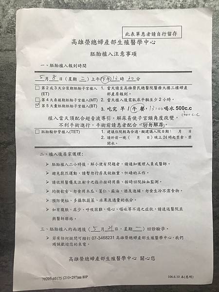 取完卵後,預計第二次月事來就可以掛第五天的診,回診看內膜厚度推估時間安排植入,結果第一次1/16月事來一次以後時至今日都沒有要來的意思,打電話回高榮生殖中心(崔醫師的患者們建議都把這電話輸入在手機裡,有疑惑就是打電話問,不要等看診再問醫生,有些瑣碎的小事,醫生都會顯得有點不耐煩XD,甚至最好提前先想好要問什麼,這樣才不會看到一聲一片空白,就被送出診間了),撥打電話後,護理師建議回診打催經,於是就來花錢了。033 發表在 痞客邦 留言(2) 人氣(4,534)